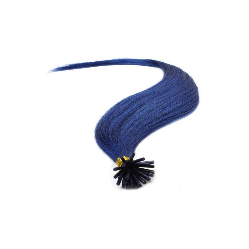 200 Strands Micro Ring Links Locks Beads Keratin Stick I Tip Straight Remy Human Hair Extensions Blue Color 0.75g/strand 22" Long By Hair De Ville