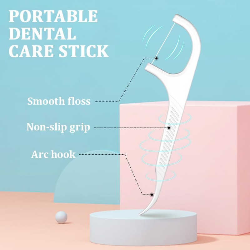 - Wissenschaftliches Design: Die Spitze der Zahnseide ist ein Zahnstocher und kann größere Ablagerungen mit Zahnseide entfernen. Der Mittelteil hat ein konvexes Design, um das Handgefühl zu verbessern, Kraft zu sparen und die Zähne zu schützen