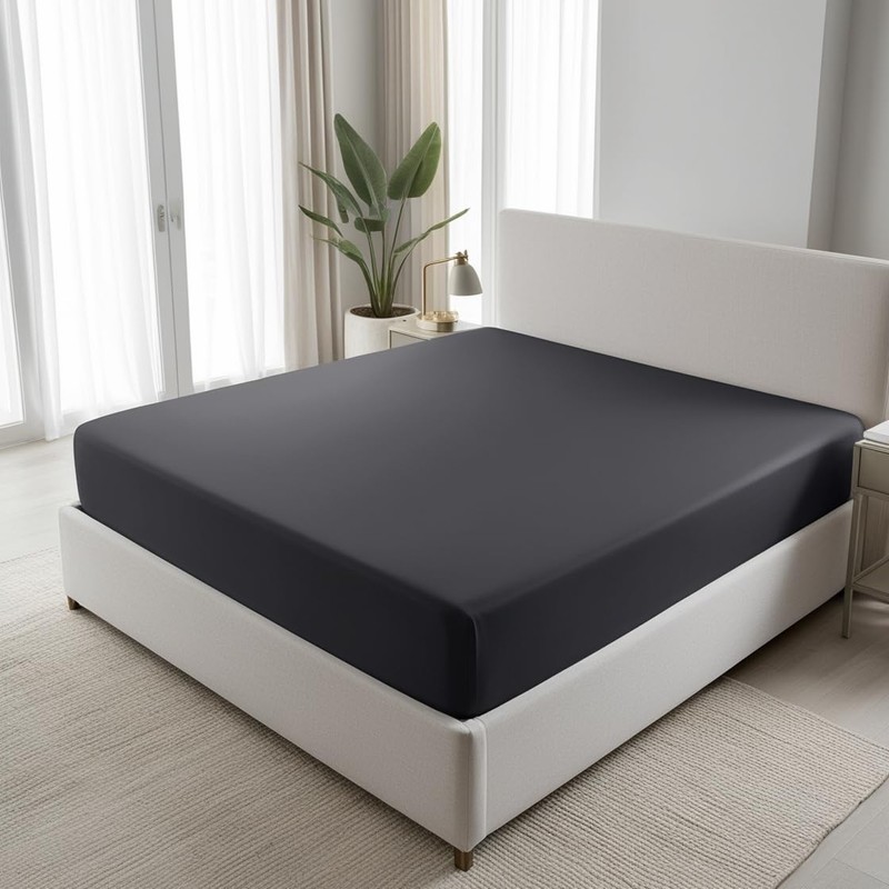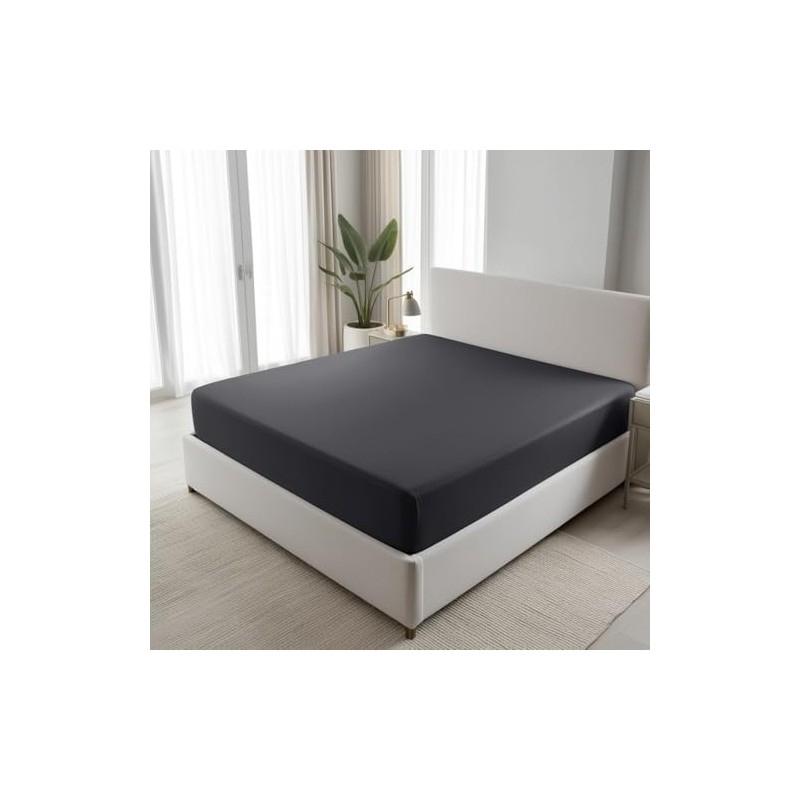 200 Thread Count 100% Egyptian Cotton Fitted Sheet - Extra Deep 16''/40cm Luxury Bottom Sheet - Ultra Soft Stretchable Deep Pocket Bed Sheet (Charcoal, Double)