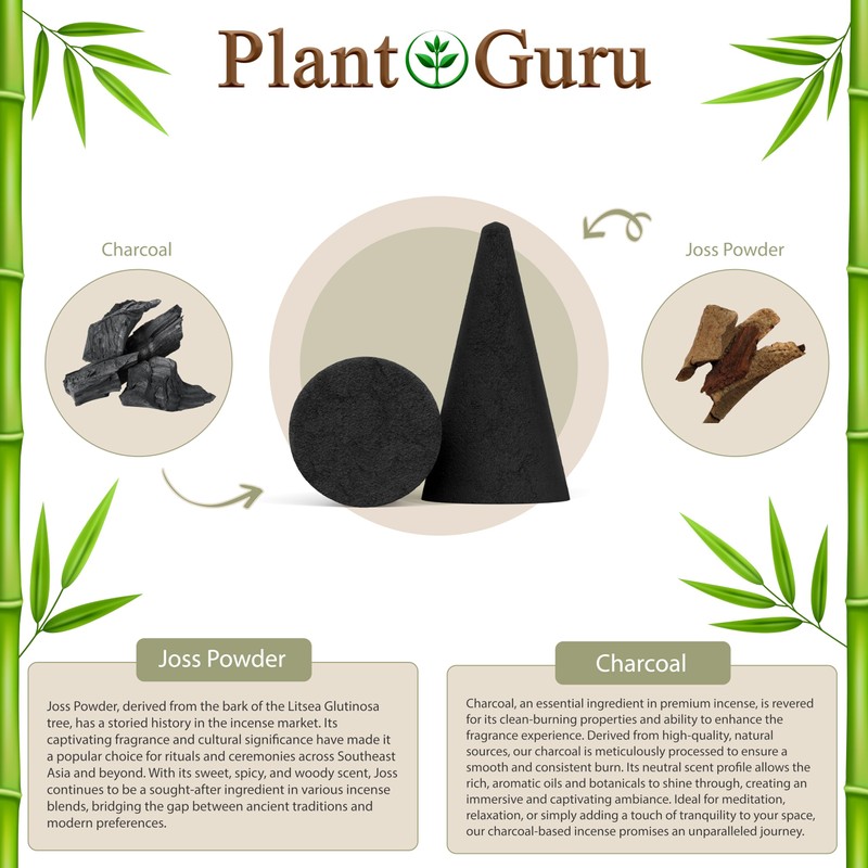 • ✅ 100% NATURAL - Our incense cones are made with all natural charcoal made from Joss Tree (Litsea Glutinosa) & Bamboo (Bambusa Arundinacea)