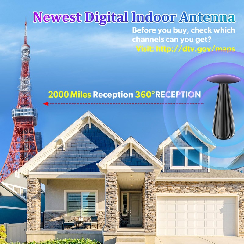 2000+ Miles Range TV Antenna Indoor, 2025 HDTV Antenna for Smart TV, Digital ...