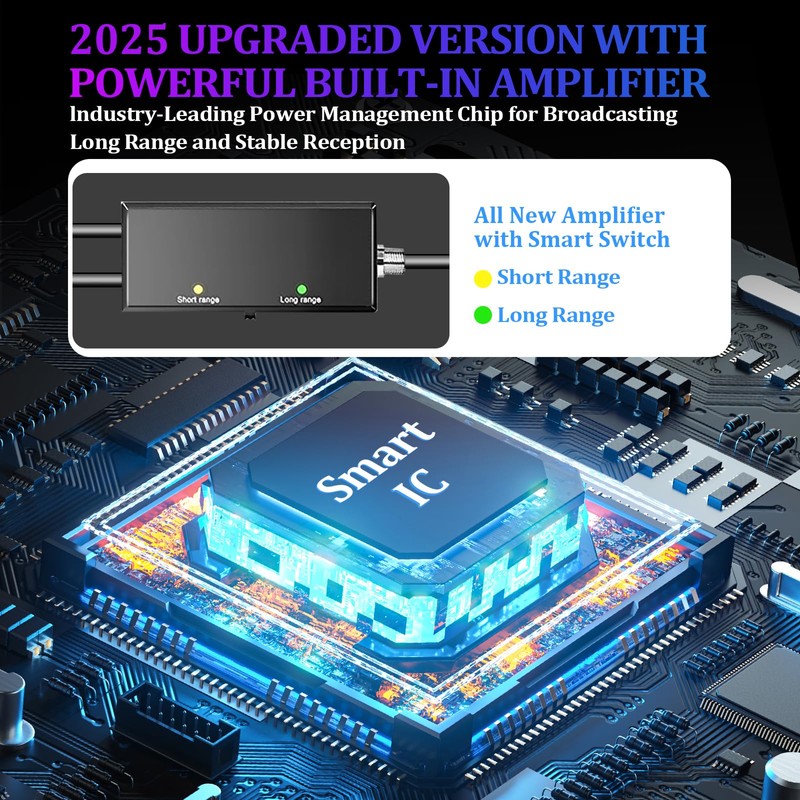 • Up to 2000+ Miles Long Range Reception: This digital tv antenna owning upgraded 2025 Smart Amplifier with 360° Reception Technology locks onto signals from up to 2000 miles away. The tv antenna amplifier has a long range and short range regulator, which allows the received channel signal to be very stable. The smart tv antenna for local channels can receive more free channels you want even though you are far from broadcast towers.