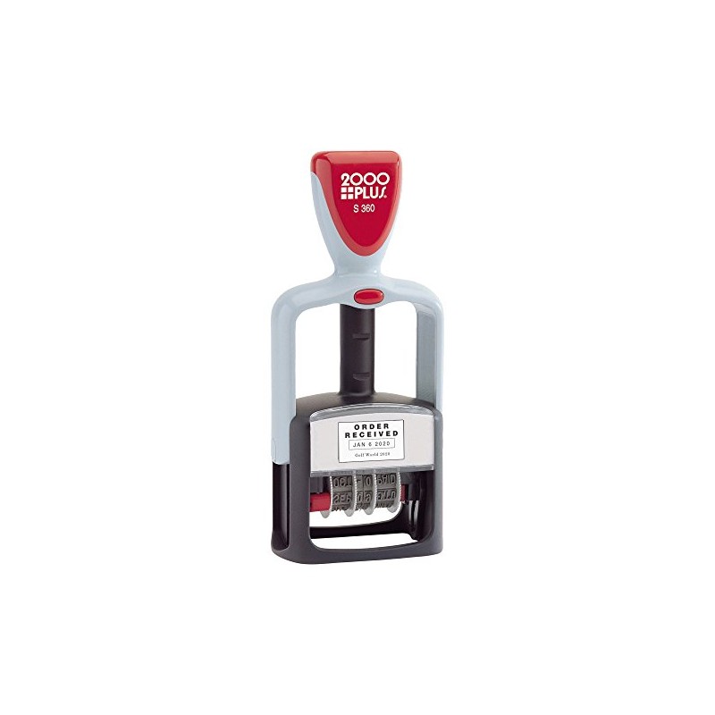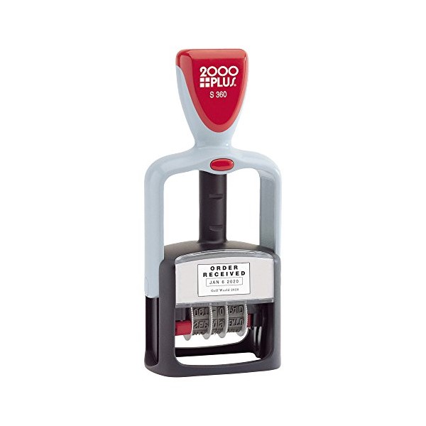 2000 PLUS Self-Inking Date and 12 Phrase Stamp, REC'D, ENT'D, ANS'D, PAID, SHP'D, CHG'D, BAL, CANC, C.O.D., FILLED, FILED, RET'D, 3/16" x 1-3/4" impression, Black Ink (0110290