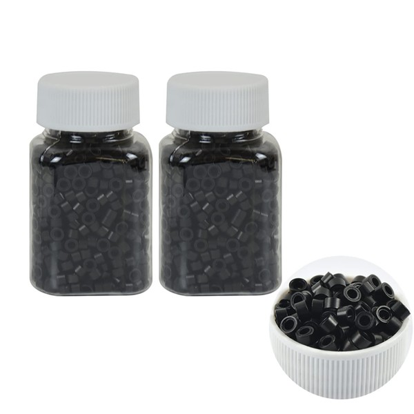 2000 unidades de microanillos forrados de silicona con cuentas de 5 mm forradas para extensiones de cabello (negro)