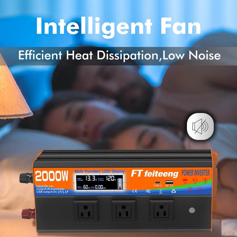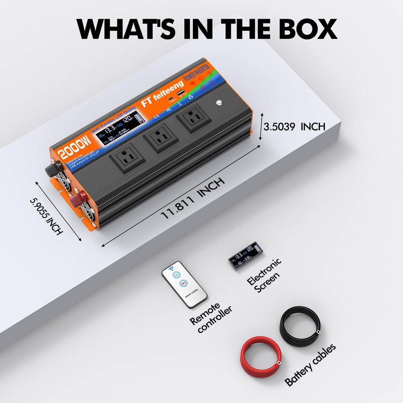 2000 Watt Inverter, Inverter 12v to 110v, LCD Display, 3 Ac Outlets, USB-C & Qc3.0 Ports, Dual Smart Fans, Remote. Power Inverters for Vehicles for Camping, Emergencies, Trucks, Rv, Off-Grid Solar