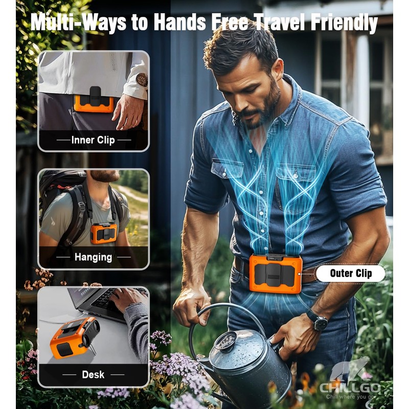 - Elegant Packaging, Travel-friendly - The portable waist fan comes in a fashionable gift box, equipped with a detachable strap, charging cable, and detailed instructions, making it a great choice for both gifts and personal use