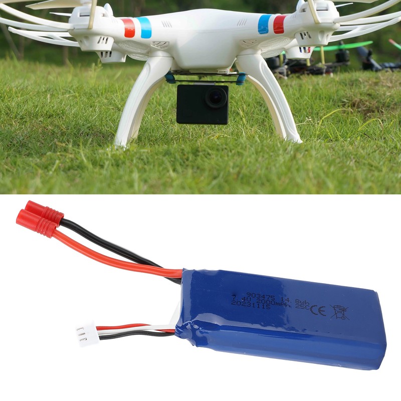 1、PORTABLE DESIGN: The portable design of lithium battery makes it easy to carry. Provide the perfect combination of weight, power and performance. 2、DURABLE MATERIAL: Lithium battery shell is made of premium material, which is durable, firm and stable, and has long service life. 3、LONG BATTERY LIFE: Durable 2000mAh lithium batteries can provide longer battery life and fully experience the fun brought by toys. 4、SAFETY IN USE: Drone lithium battery has overcharge guard and short circuit guard to ensure the safety of charging process. 5、EASY TO INSTALL: Equipped with a banana plug for hassle free installation and removal. This makes it convenient to swap batteries and keep your drone flying.