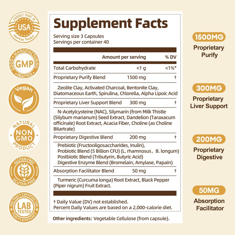 2000MG Complete Binder Detox+ Activated Charcoal, Zeolite, Bentonite Clay, NAC, Milk Thistle, Probiotic, All-in-1 Detox & Cleanse Supplement, Liver & Gut Support, 120 Capsules