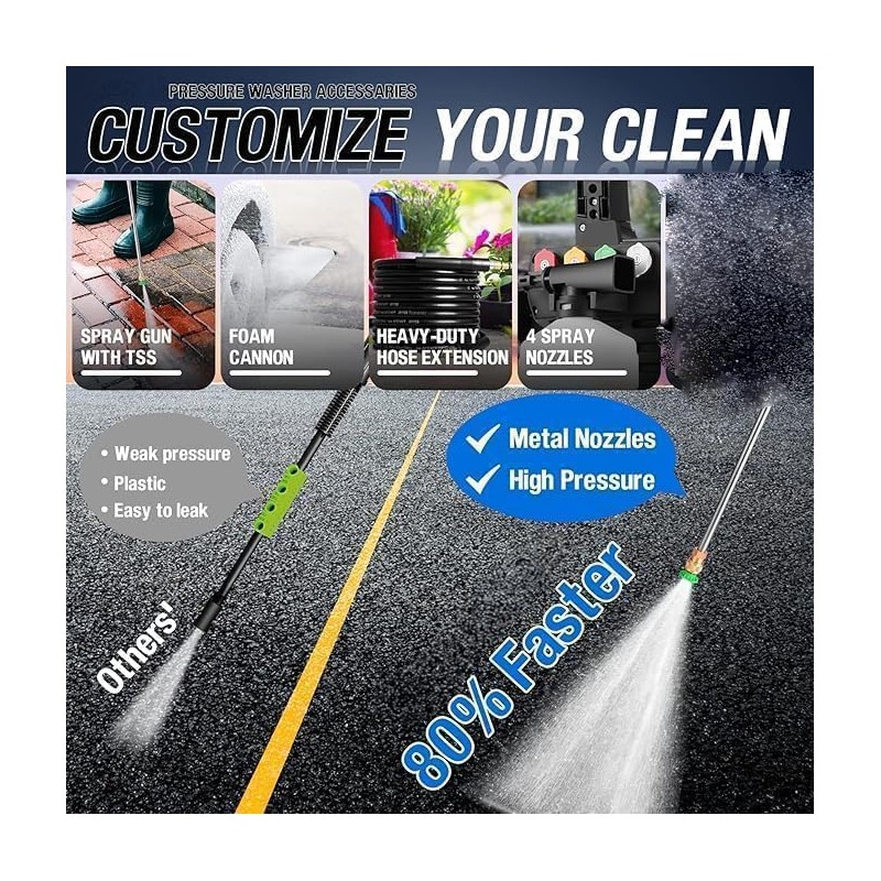 - Intelligent, Energy-Efficient Operations: Our innovative Total Stop System automatically halts the pressure washer when not in use, conserving energy and prolonging the lifespan of the machine.