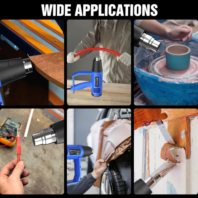 - ♛Wide Application: The heat gun is ideal for heating shrink tubes, bending PVC, paint & rust removal, thawing pipe, igniting charcoal, auto glass repair, etc.