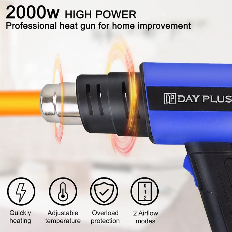 - 【Fast Heating & Overheat Protection】: Our heat gun provides strong power quickly heat up to 650℃ in seconds, also equipped with the 4th generation overload protection system, when over heated, it will automatically stop working to protect the heat gun and avoid any other problems.