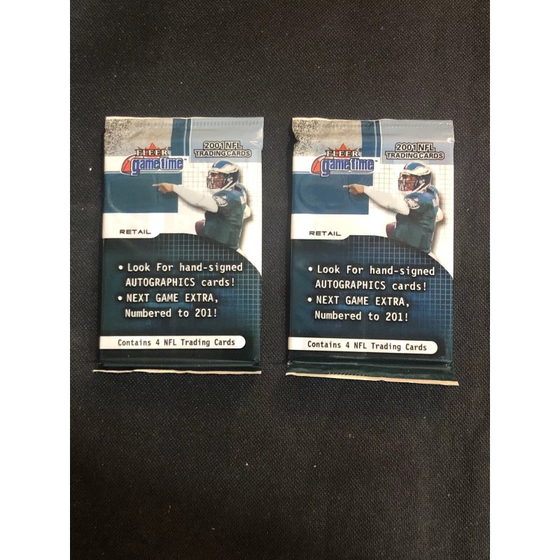 2001 Fleer Game Time Football (2) Packs which contains 4 cards to each pack. Possible pulls Drew Brees Rookie, Michael Vick Rookie, LaDainian Tomlinson Rookie, Deuce McAllister Rookie and Other HOF players and autographed cards. Condition is Brand New. Shipped with USPS First Class Package. Check out my other auctions and store for more rare hard to find items! Combine shipping is available on this item with others shop to save $$$$!!!