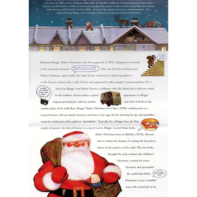 - Fully illustrated by Raymond Briggs, this pack opens-out into a cartoon strip of Father Christmas performing his duties. It also tells the story behind the character and of Briggs’ other much loved books.