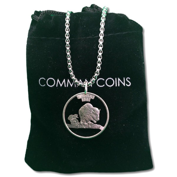 2005 Kansas Cut Coin Necklace State Quarter Buffalo and Flowers Nickname The Sunflower State US Jewelry
