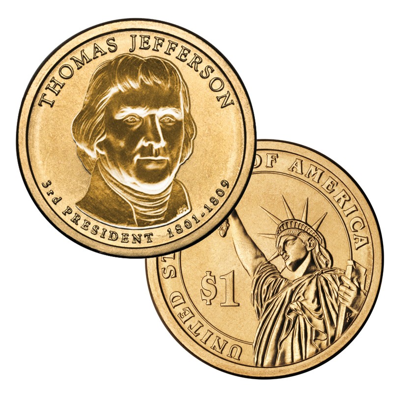 2007 Thomas Jefferson Enhanced Reverse Proof Presidential Dollar coin