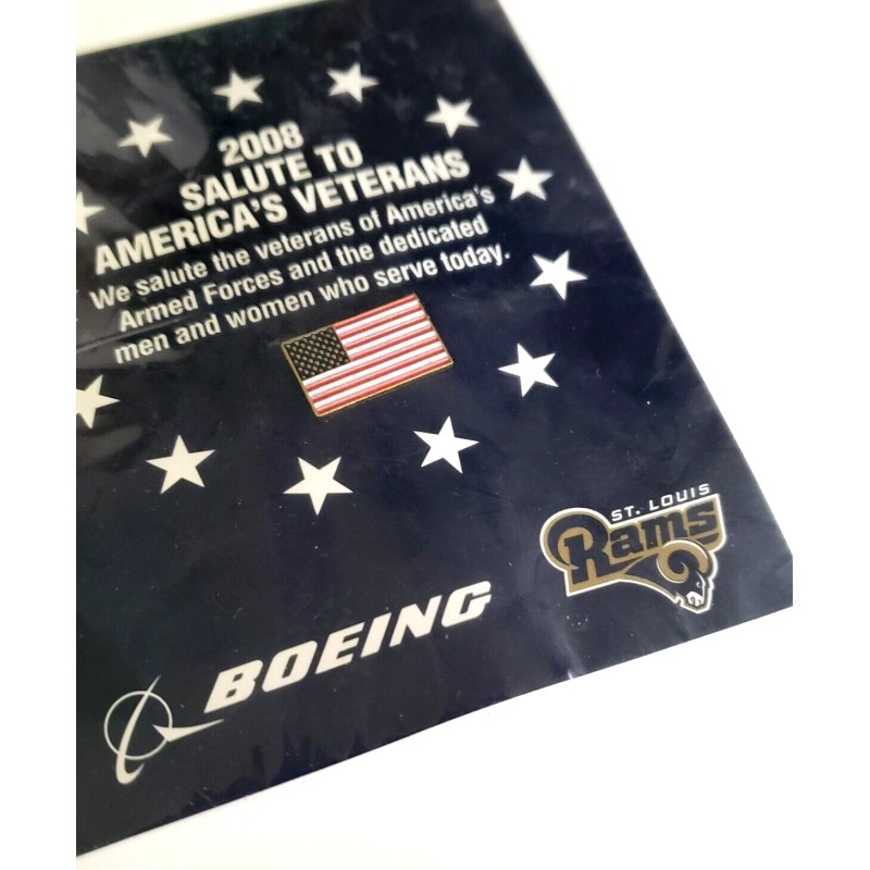 2008 American Flag Salute To Veterans Enamel Tie Tack Pin in Card Boeing Rams