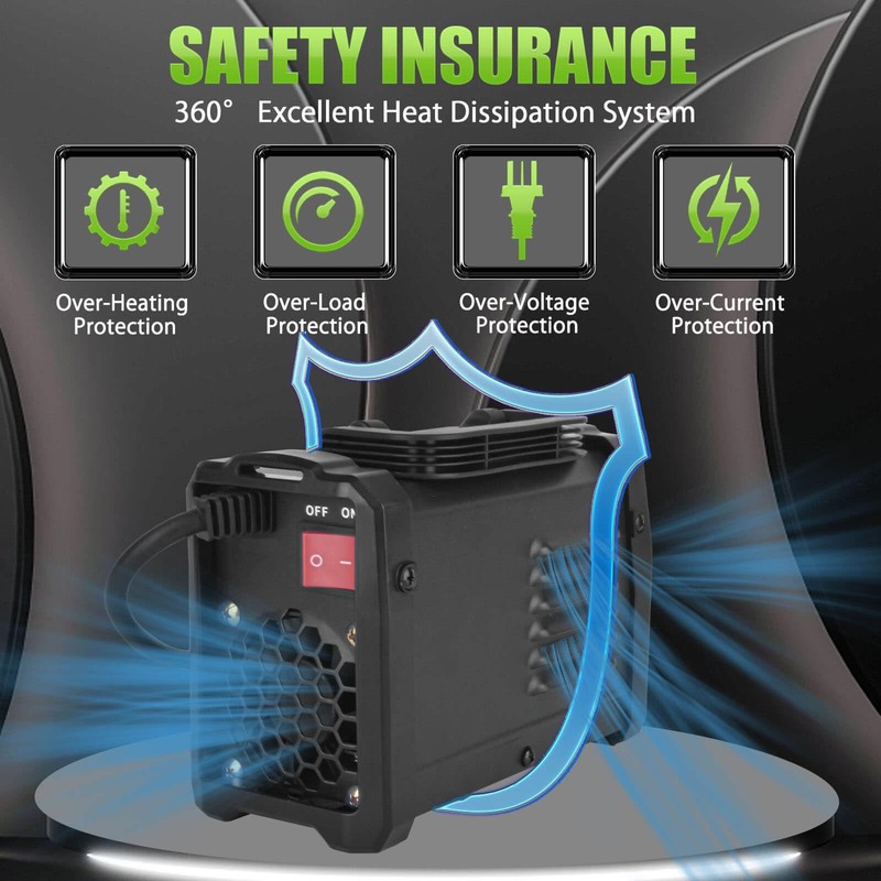- γπππ πππππ πππ π ππππ ππππ-πππππγThe mini welder machine 110V has hot start, anti-sticking and arc pushing force functions, which make the welding machine start arc quickly and weld more smoothly, avoiding the rods sticking in the molten pool. Built-in over-voltage, over-current, over-heating and overload protection as well as a high-power fan accelerate heat dissipation, ensure safe operation while prolonging the service life of the welder machine.