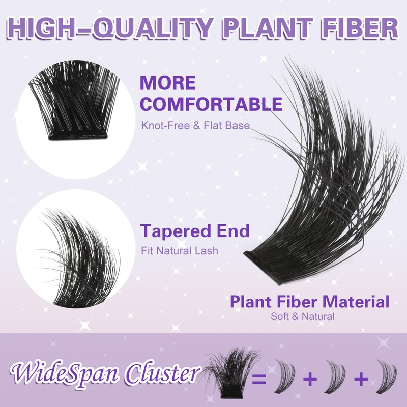 - Easy Application, No Shedding Drama: Tired of stray fibers ruining your look? Our premium plant fibers resist shedding during application and wear. The tapered ends and flexible base blend seamlessly for a pro-finish. Build your dream lash line cluster by cluster—effortlessly.