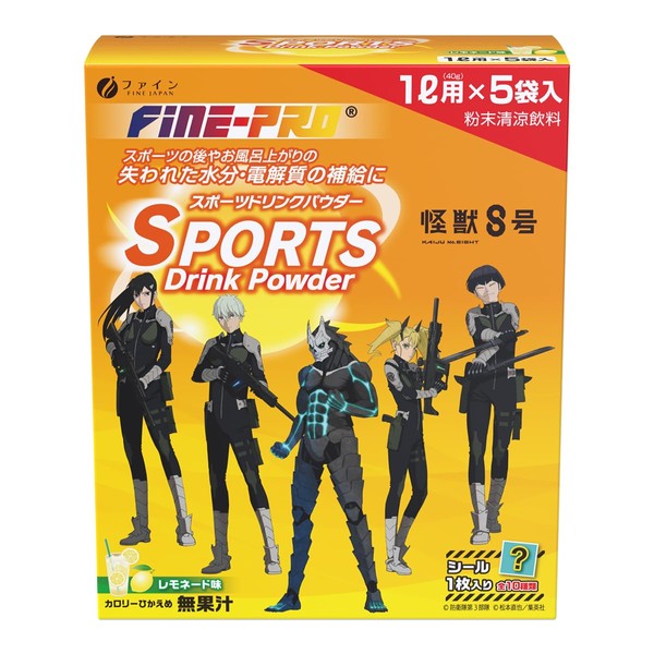 ファイン ファインプロ スポーツドリンク パウダー レモネード味「怪獣8号」コラボ 200g(40g×5袋) 粉 クエン酸 ビタミンC カルシウム 配合 ...