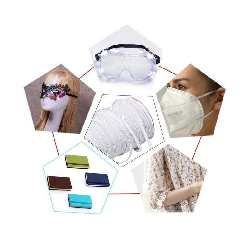 - The elastic bands can be used frequently in face masks, home decor or belts, shoelaces, hair bands, necklines, shorts, skirts, sleeves, stockings, scarves, lace, wigs, diaries, hats, bags and even DIY jewellery.