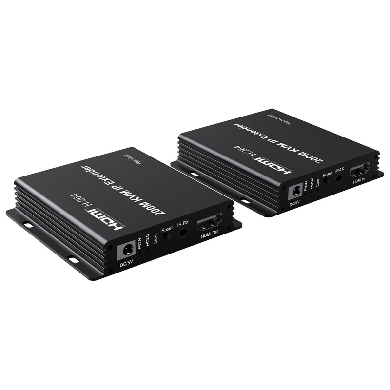 - A: 200M KVM IP Extender: 200M long distance transmission, supports one-to-one, one-to-many, As well as the cascade transmission method.