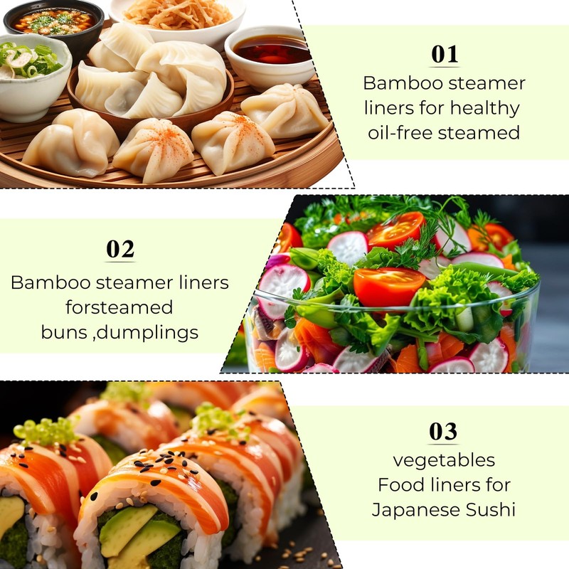 - Enhance Your Cooking Experience: Our Bamboo Steamer Liners are designed to provide a seamless cooking experience. The non-stick surface ensures easy removal of food, preventing any sticky messes and preserving the integrity of your dishes
