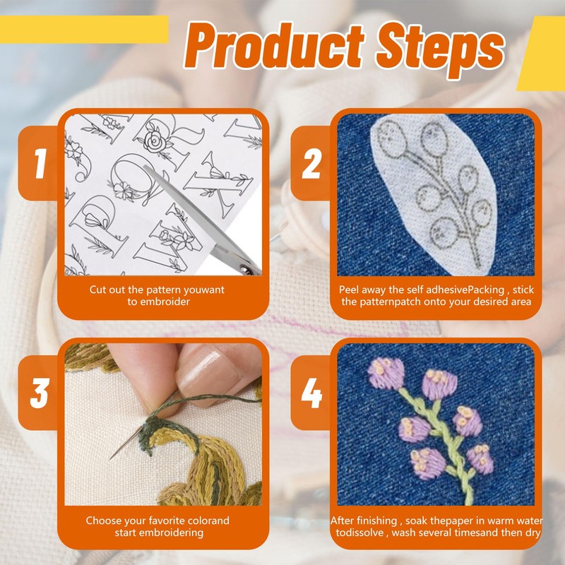 - 🌸LEARN TO EMBROIDER: Embroidery pattern embroidery kit suitable for beginners. By embroidering floral designs with different embroidery patterns, it is possible to practice different stitches - first on your own embroidery base, then on clothing. Because our water soluble membrane can dissolve in water, take care to waterproof it before finishing. It is easy to clean and convenient for you.