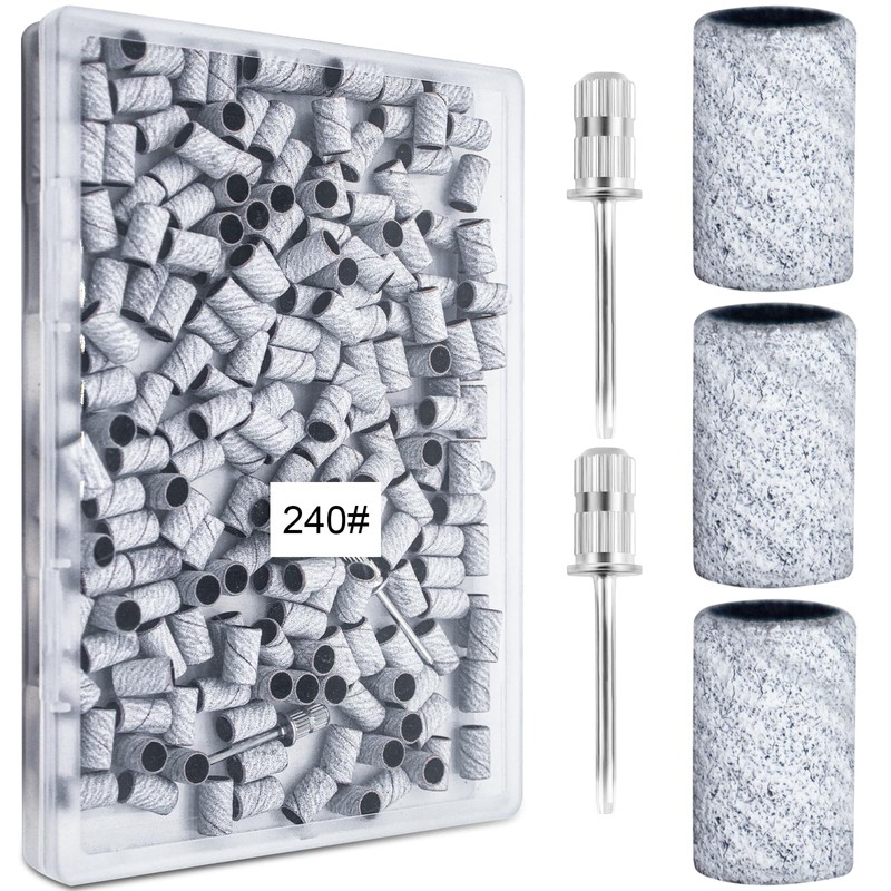 - ❤️240 GRIT SANDING BAND - You will get 200pcs 240grit sanding bands and 2pcs sanding bit for nail drill. 3/32” Mandrel bits for electric nail drill are fit for most nail drill. The fine grit sanding bands & mandrel bit is a must have for any nail technician or beginners.