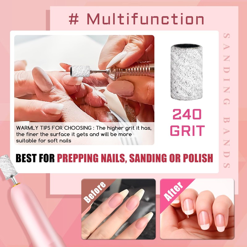 - 💛MULTI-USAGE NAILS SANDING BAND - 240 grit is the finest sanding band for nails, commonly used to smooth and polish the nail surface for prepping nails before applying product. Fine grit sanding bands suitable for natural nails, protect your nails from damage.