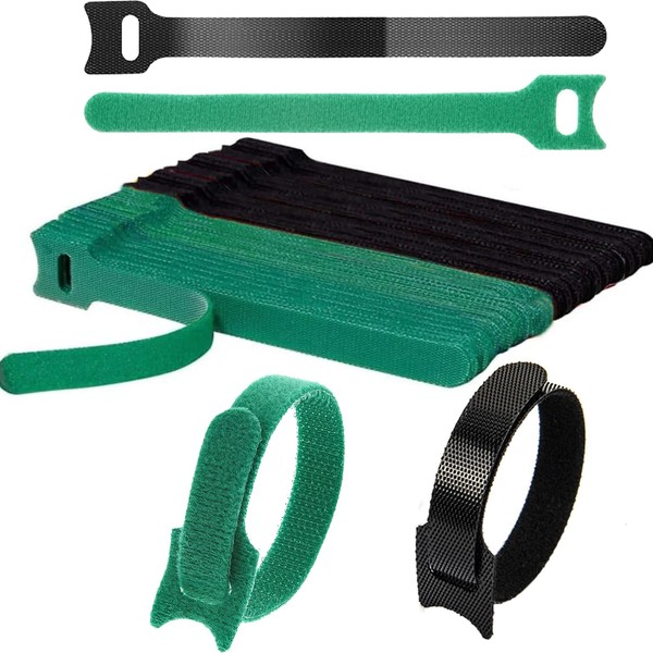 - 【Package】Includes 200pcs of hook and loop straps,100 black and 100 green each, each measuring 15 x 1.2 CM