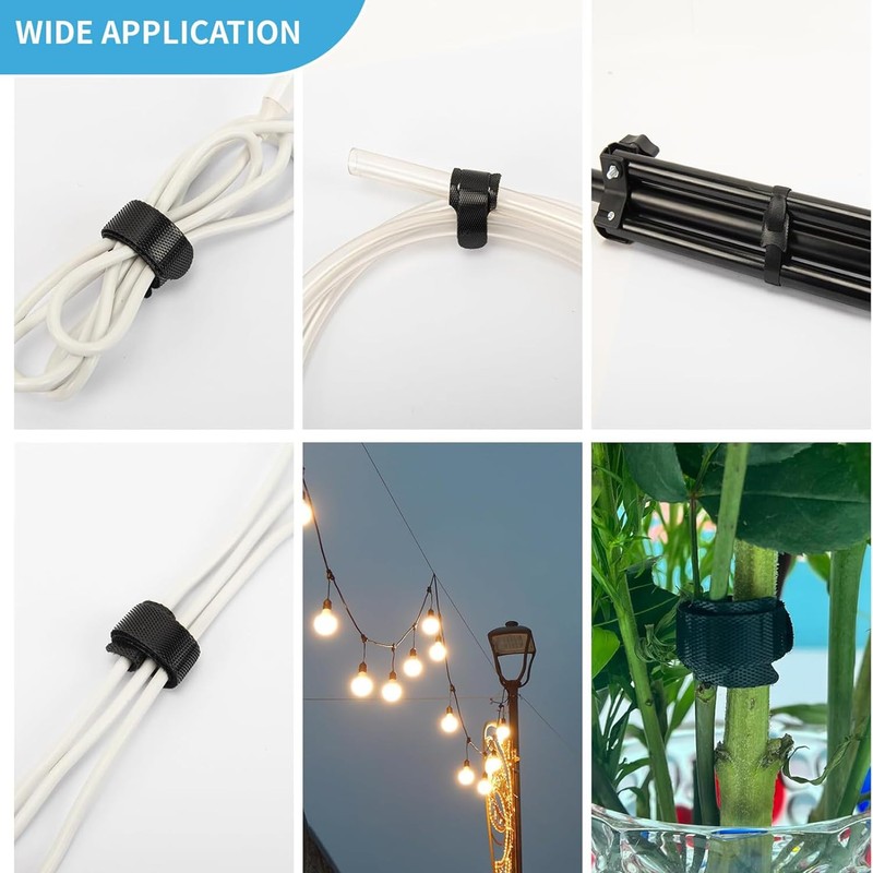 The cable ties can be used to tie up small items such as computers, pc, usb, electronics, TV cables, charging cord, extension cord, speaker cables, guitar cables, plant.Even in large items like hoses, umbrellas, sports equipment, bundling boxes, books, tools etc. It is great for keeping all kinds of cords cables well organized and tidy in place.