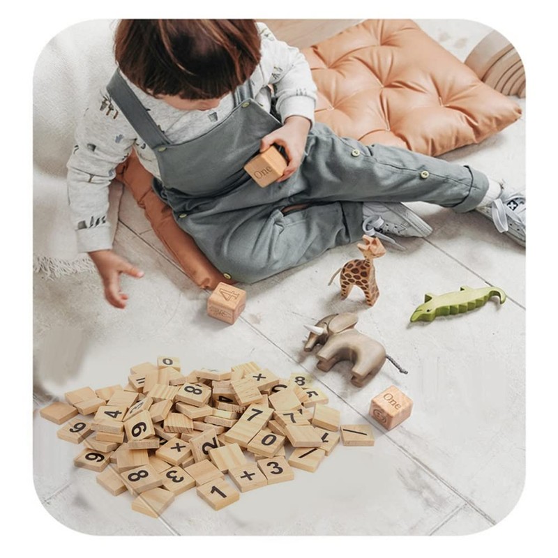 200pcs Wood Number Tiles Wooden Number Puzzle Blocks Numbers and Symbols for Crafts Spelling Scrapbooking Decoration(#1)