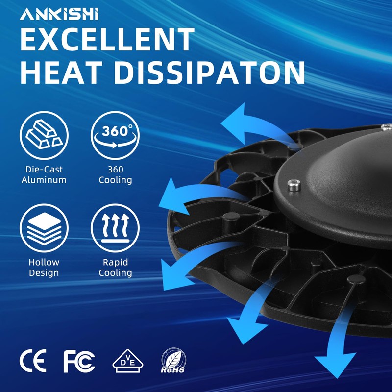 - 【120° large beam angle】UFO mining lamp adopts 120° large beam angle and 6500K cold white light design, the range of illumination is wider than any other UFO commercial lamp, ensuring that the light covers the largest range and provides the best lighting experience.