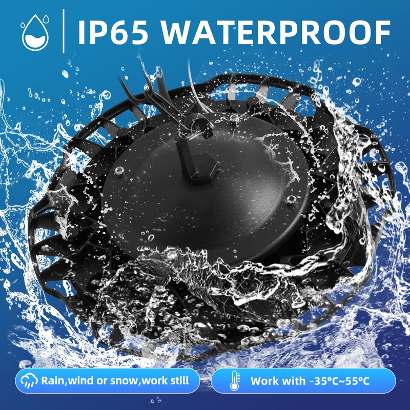 - 【IP65 Waterproof】IP65 waterproof and dustproof design, suitable for indoor and outdoor places. Such as warehouses, factories, stadiums, basements, workshops, logistics centers, exhibition halls, etc. The package contains a 75cm cable, a hook, a safety rope and a 50cm hanging chain, which is easy to install on the ceiling.