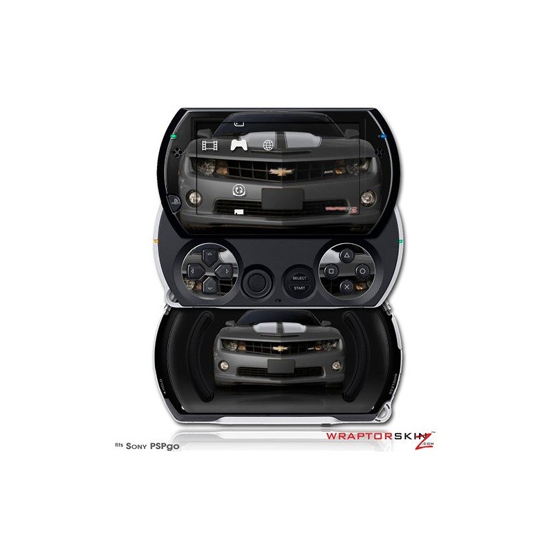 2010 Chevy Camaro Cyber Gray - White Stripes on Black - Decal Style Skins (fits Sony PSPgo)