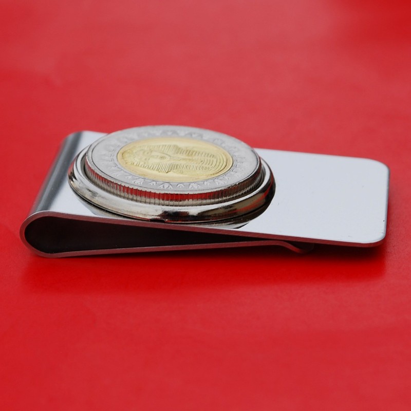 You are looking at a gorgeous money clip, set with an authentic 2010 Egypt 1 Pound King Tut Gold Mask BU Uncirculated Coin. The clip is about 50mm(2") x 30mm(1.2"), made of stainless steel, silver body with a silver coin bezel to hold the coin, and has never been worn or used before. I only use these coins with readable dates, never try to clean them, and always keep their collectible and numismatic values. I hope you end up with one of these beautiful coin money clip. This money clip will be great for holiday gift, investment purpose or just adding to your coin/jewelry collection. I will be happy to combine shipping for multiple items. Thanks!!!