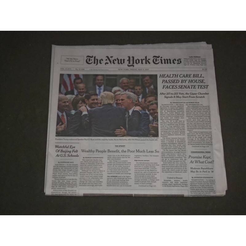 2017 MAY 5 NEW YORK TIMES - HEALTH CARE BILL PASSED BY HOUSE - FACES SENATE TEST