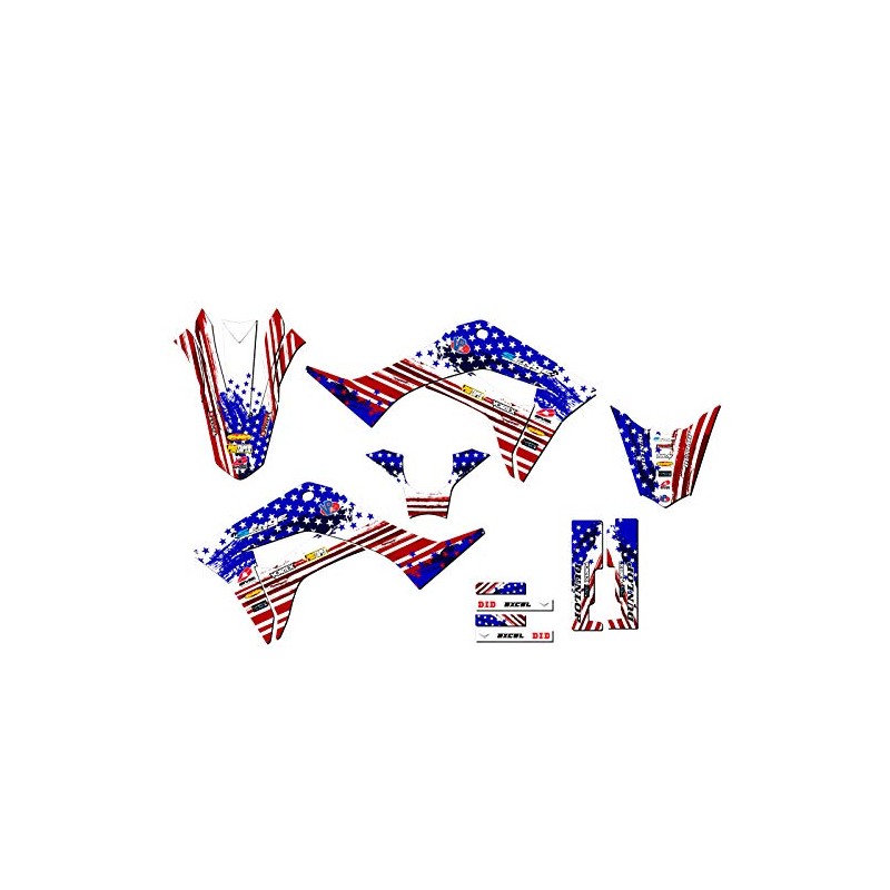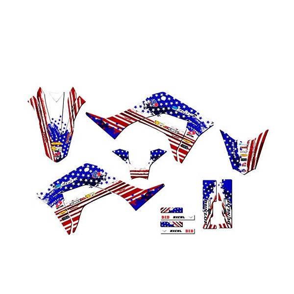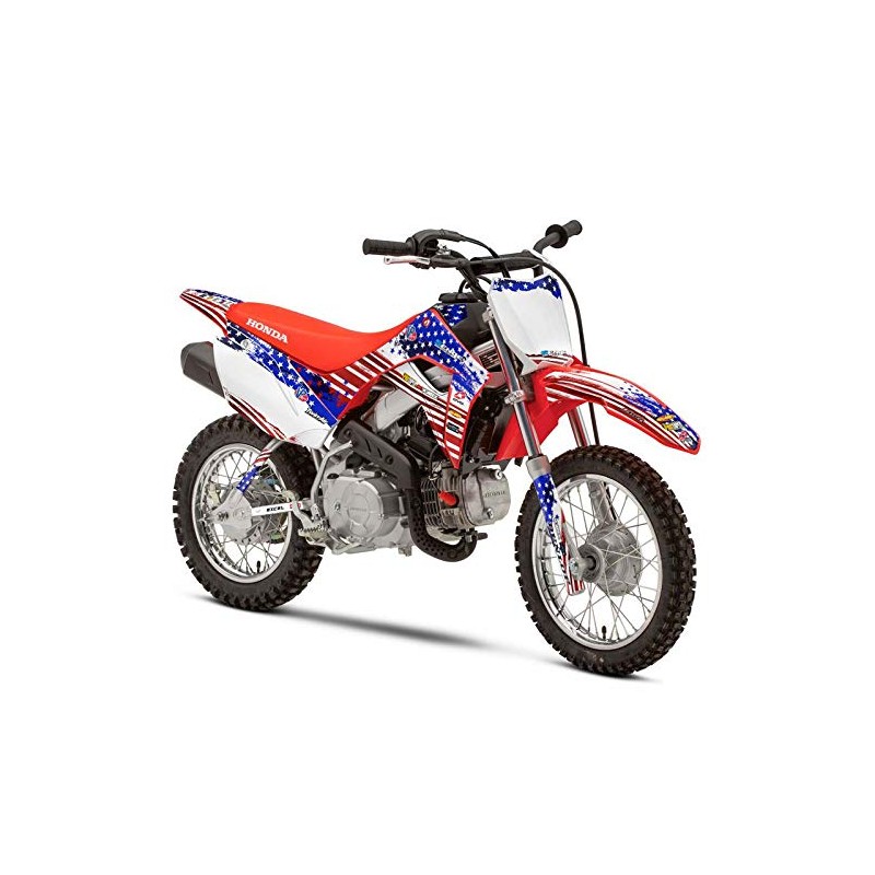 - 2019-2022 CRF 110 MERICA Usa Senge Graphics Kit Compatible with Honda. The photo shown shows the exact decals you will receive. Please refer to the photo to make sure you are getting the exact amount of coverage you want. You can toggle between base, complete, and rider I.D. to see all of the differences.