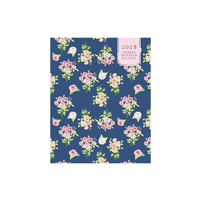 2019 Weekly Splendid Planner: Pretty Navy & Pink Floral Print Dated Weekly & Monthly Schedule Calendar Notebook, Soft Cover