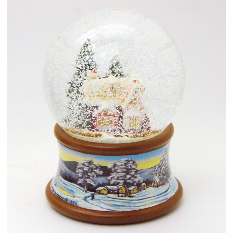 - Snow globe play clock Christmas: in the bauble a sweet sugar baker's house in the snowy winter forest. The base is elaborately designed with a romantic and detailed winter landscape.