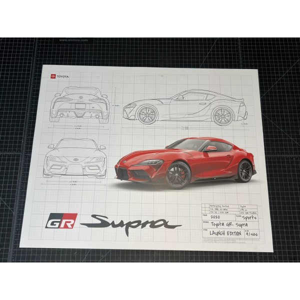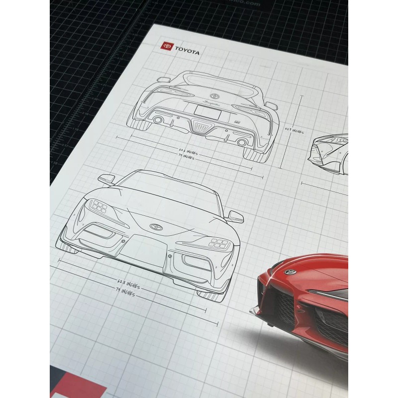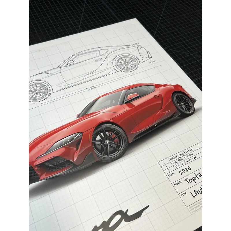 2020 TOYOTA SUPRA GR Launch Edition Blueprint Poster 26" x 21"