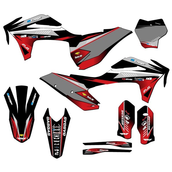 • 2021-2023 EX SURGE Black Senge Graphics Kit Compatible with GASGAS. The photo shown shows the exact decals you will receive. Please refer to the photo to make sure you are getting the exact amount of coverage you want. You can toggle between base, complete, and rider I.D. to see all of the differences.