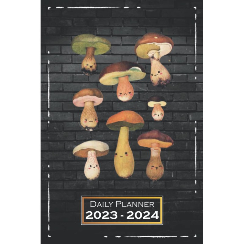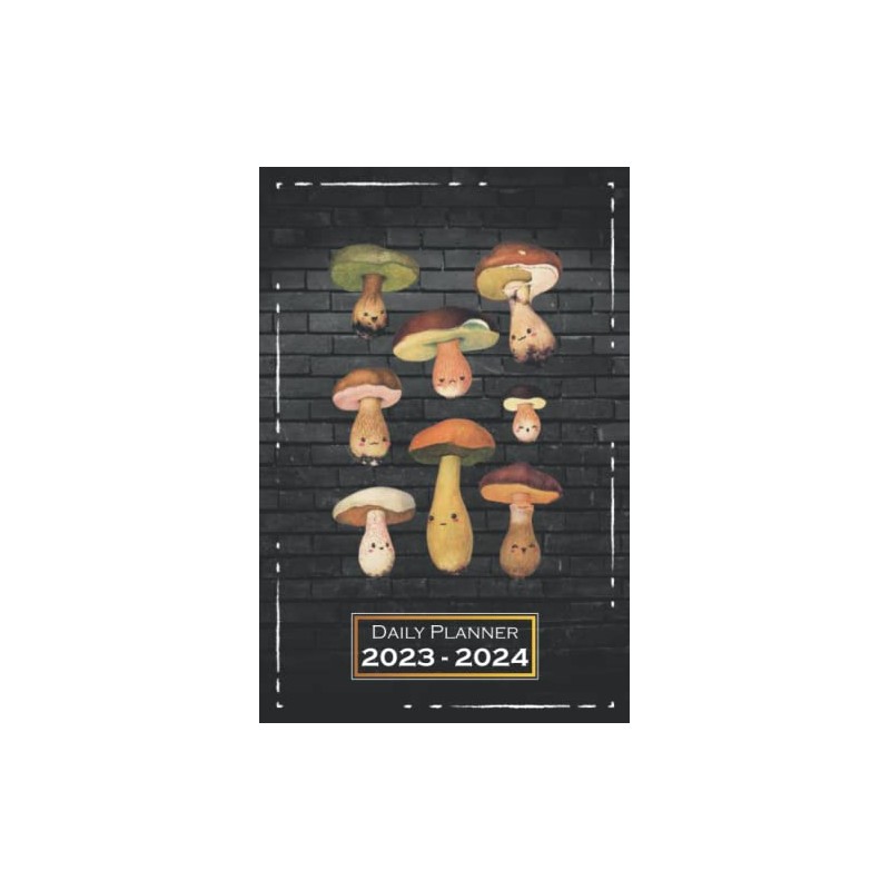 2023-2024 Daily Planner: Softcover, 6x9 inches | From Sunday to Saturday | One Week on a Double Page | with Monthly Overview | Mushrooms Forest Motif | qx1
