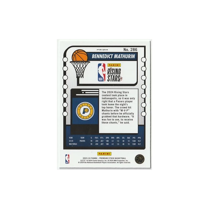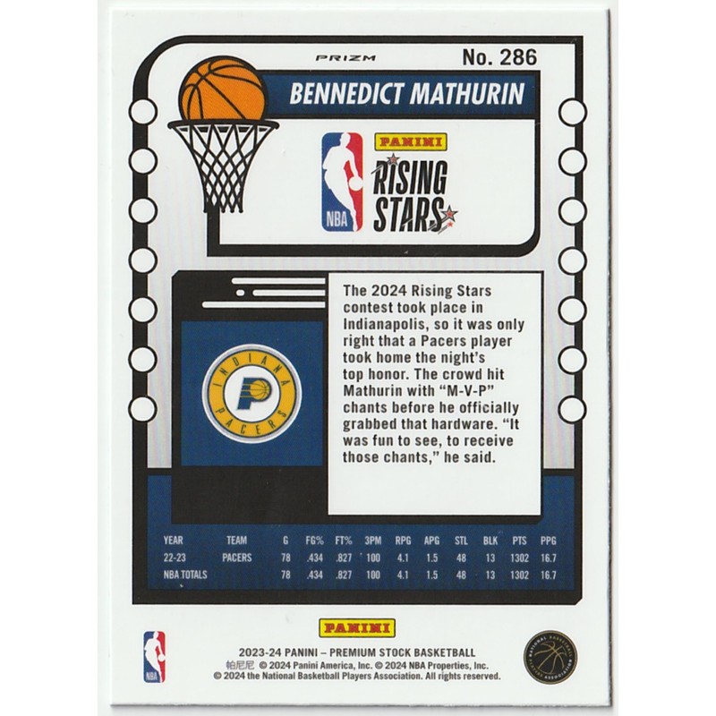 2023-24 Panini Hoops Premium Stock Rising Stars Flash Prizm Bennedict Mathurin Card #286 (J2GO)