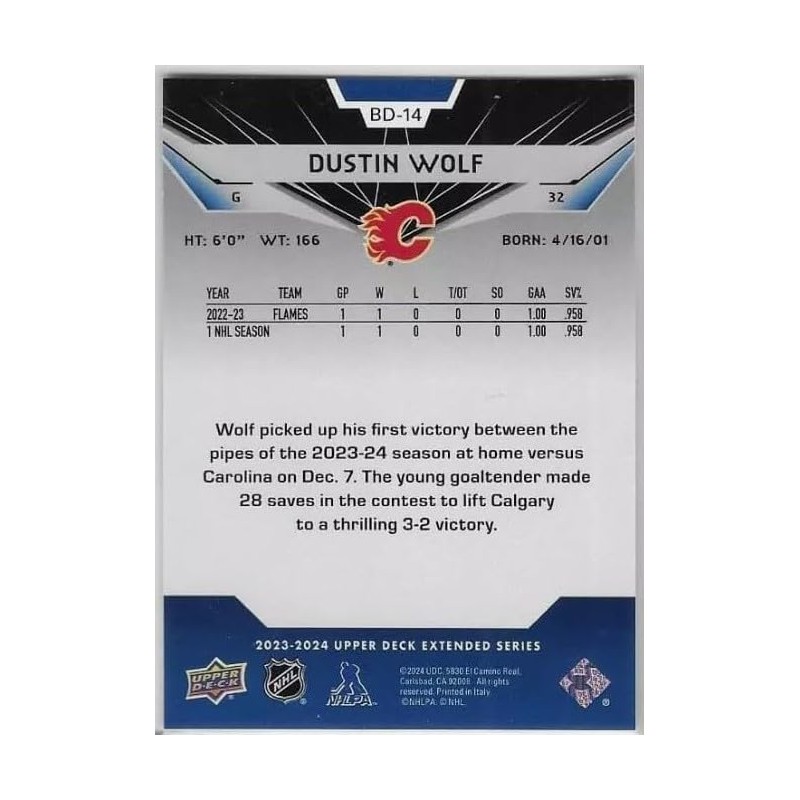 - Tookie card insert of Dustin Wolf from Upper Deck Extended Series!