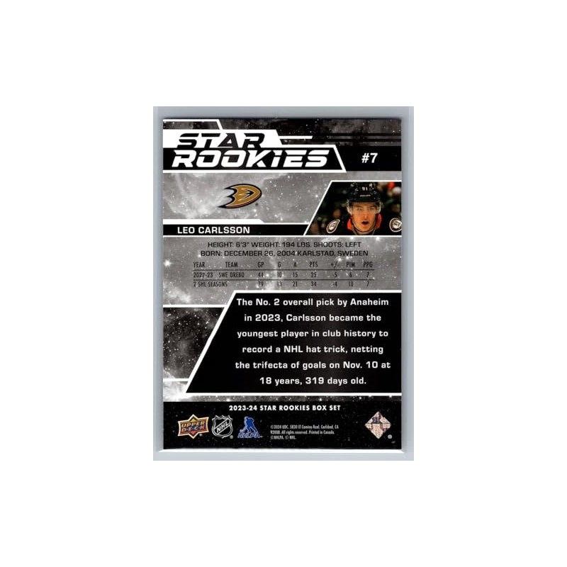 - 2023-24 Upper Deck Star Rookies #7 Leo Carlsson Rookie Card RC Hockey Card Anaheim