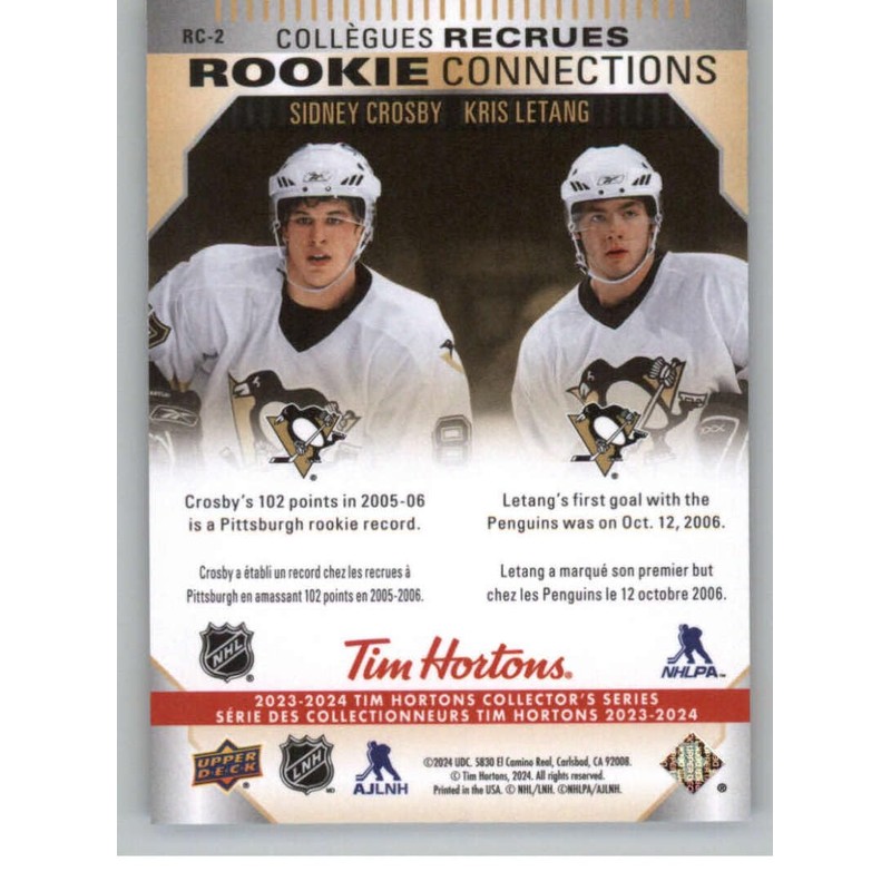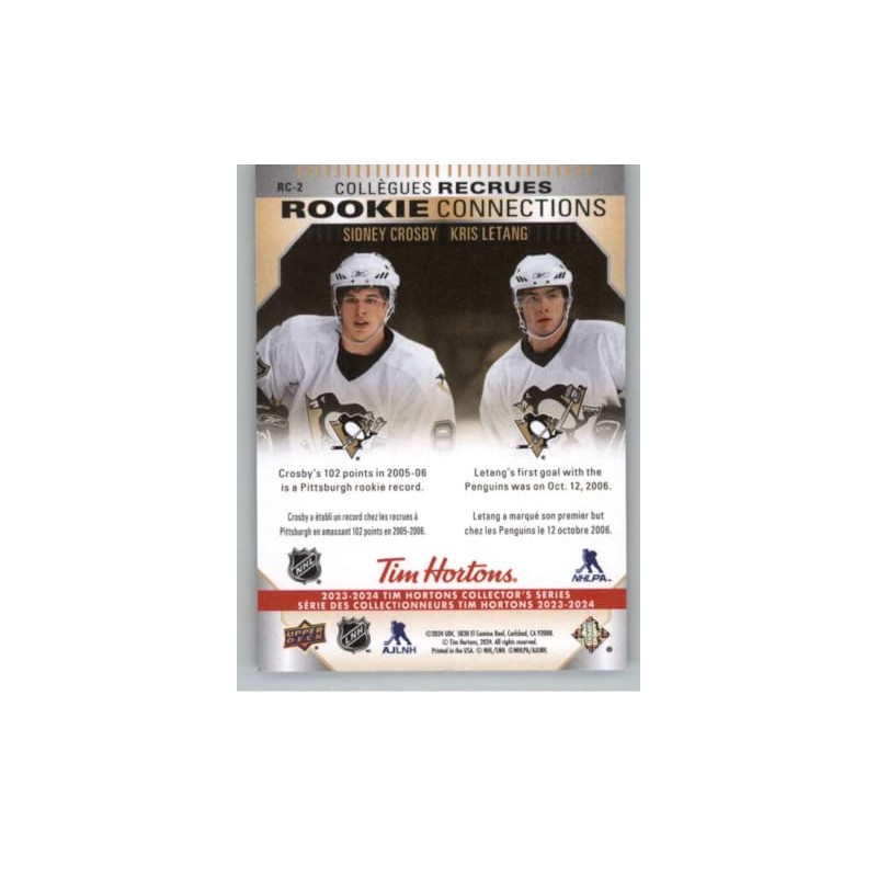 - 2023-24 Upper Deck TH Duos Rookie Connections #RC2 Sidney Crosby Kris Letang Hockey Card