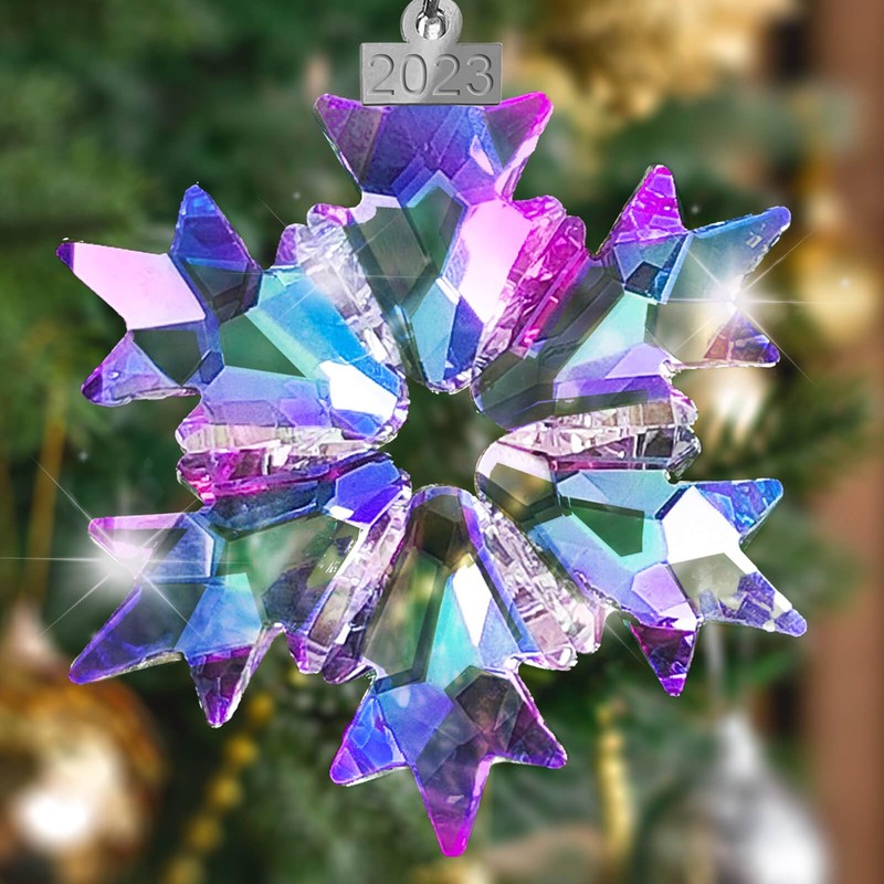 2023 Annual Edition Snowflake Clear Crystal Christmas Ornament, Fancyoung Snowflake Ornaments Christmas Tree Hanging Pendant Decorative Hanging Ornaments
