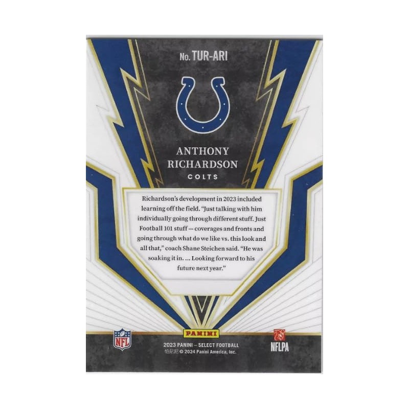 2023 Anthony Richardson Rookie Card Panini Select Football Turbocharged Rookies RC #TUR-ARI (J2GO)