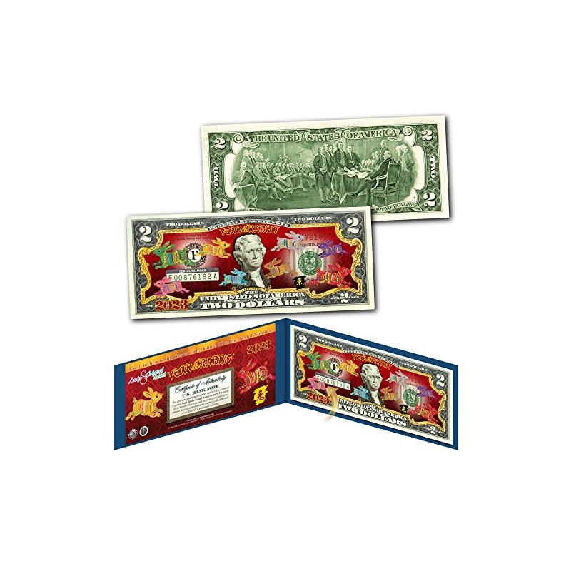 2023 Chinese Lunar New Year Year of The Rabbit Polychrome Uncirculated Two Dollar Bill Special Edition Collectible Display Blue Folio